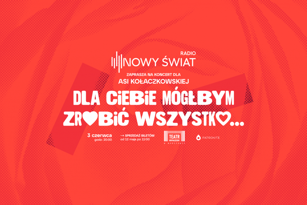 We wtorek 3 czerwca Radio Nowy Świat wspólnie z Teatrem Współczesnym w Warszawie zorganizuje koncert pt. "Dla Ciebie mógłbym zrobić wszystko". Dochód ze sprzedaży biletów zostanie przeznaczony na wsparcie dla aktorki kabaretowej Joanny Kołaczkowskiej, która walczy z nowotworem i z dnia na dzień musiała przerwać swoją estradową działalność.