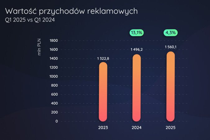 Rynek reklamy wideo, obejmujący telewizję i wideo online, wzrósł w pierwszym kwartale 2025 roku o 4,3 proc. w porównaniu do analogicznego okresu w 2024 roku, a jego wartość wyniosła blisko 1,56 mld zł – wynika z analizy Publicis Groupe Polska.