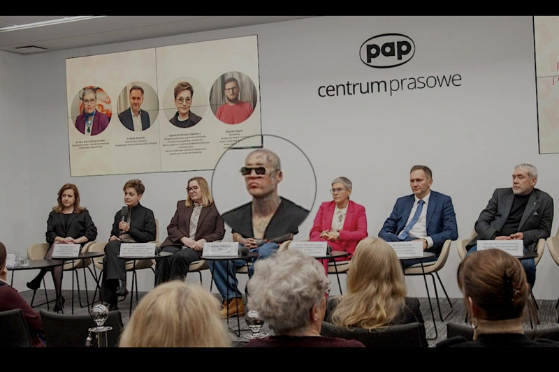 Damian Zduńczyk "Stifler" pojawił się pod koniec października na konferencji zorganizowanej w Centrum Prasowym PAP (screen: Facebook/Fundacja Chaber Polski)