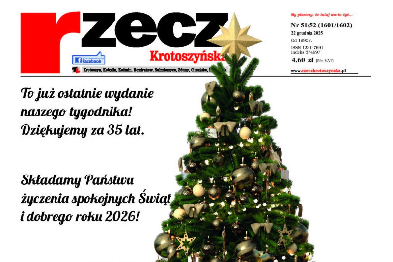 Ostatni numer "Rzeczy Krotoszyńskiej" wydany przez Janusza Urbaniaka ukazał się 12 grudnia (fot. Rzecz Krotoszyńska)