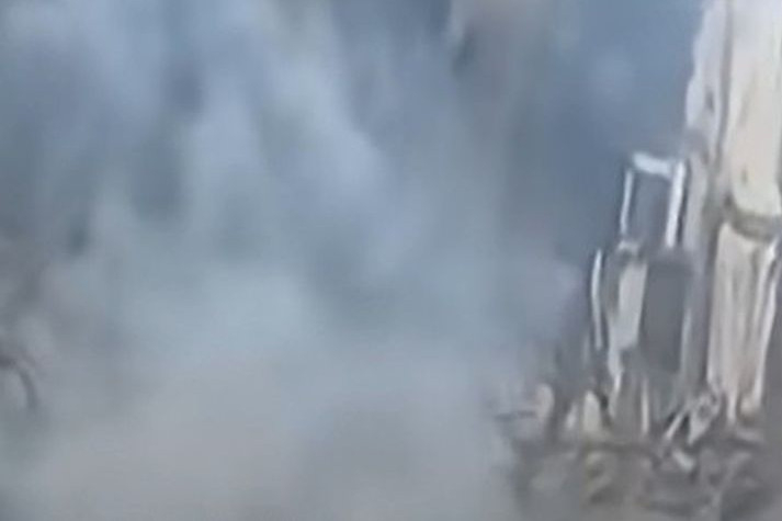 Część kompleksu nadawczego została uszkodzona, ale stacja wciąż nadaje (screen: YouTube/MiddleEastEye)