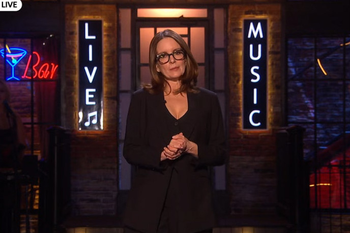 Główną prowadzącą premierowy odcinek brytyjski była Tina Fey – amerykańska aktorka, scenarzystka, producentka i komiczka (screen: YouTube/Sky TV)