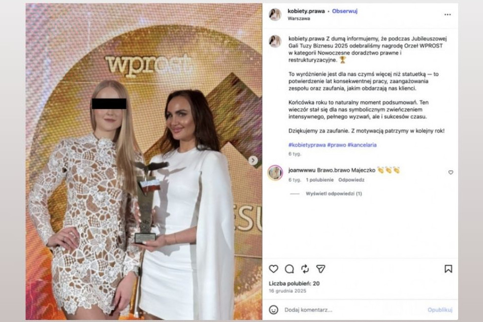 Mimo to w połowie grudnia tygodnik "Wprost" na gali Tuzy Biznesu 2025 przyznał Chwaliszewskiej i jej kancelarii Chwaliszewska i Wspólnicy statuetkę "Orła". "Dla laureatki prawo to narzędzie do zapewnienia klientom pełnego bezpieczeństwa" – uzasadniał tygodnik. Na zdjęciach z profilu Kobiety.Prawa widać nagrodzone na tle ścianki "Wprost" w kategorii "nowoczesne doradztwo prawne i restrukturyzacyjne".