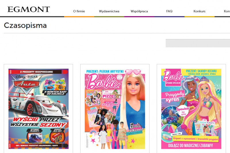 W portfolio wydawnictwa znajduje się wiele tytułów prasowych, m.in. "Barbie" (screen: Wydawnictwoegmont.pl)